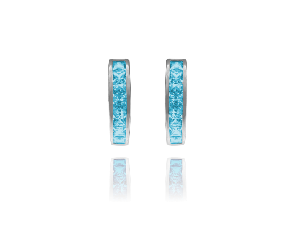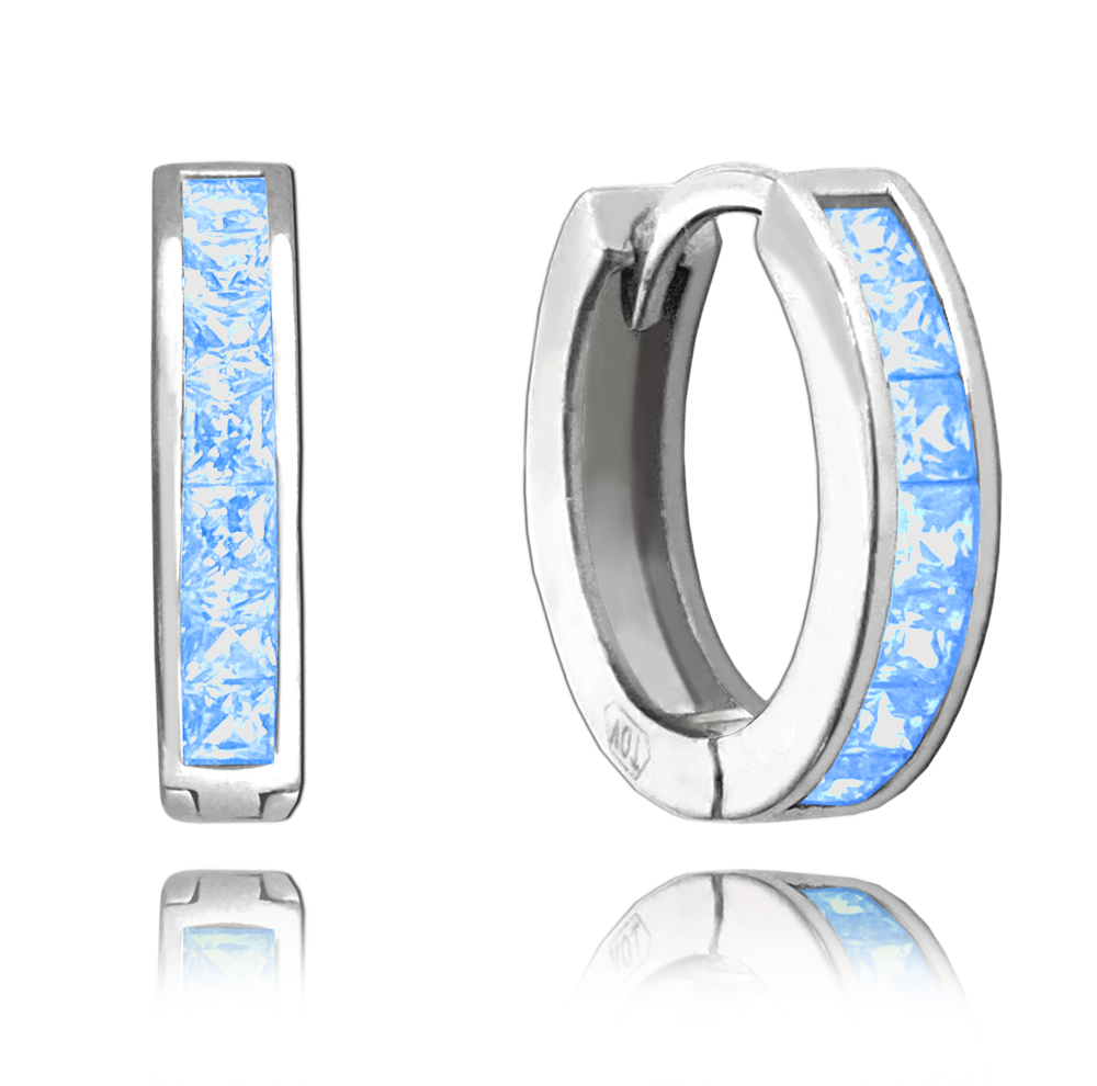 Bledě modré náušnice kroužky jsou díky praktickému zapínání a tvaru pohodlné pro každodenní nošení. Modré zirkony se krásně třpytí a ozvláštníte jimi svůj outfit. Povrch stříbra je z rhodia, náušnice tedy neztratí svůj zářivý lesk a barvu.