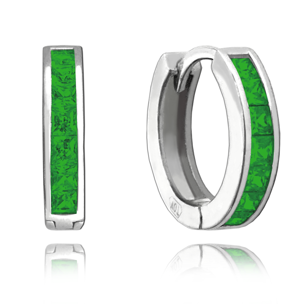 Zelené náušnice kroužky jsou díky praktickému zapínání a tvaru pohodlné pro každodenní nošení. Zelené zirkony se krásně třpytí a ozvláštníte jimi svůj outfit. Povrch stříbra je z rhodia, náušnice tedy neztratí svůj zářivý lesk a barvu.