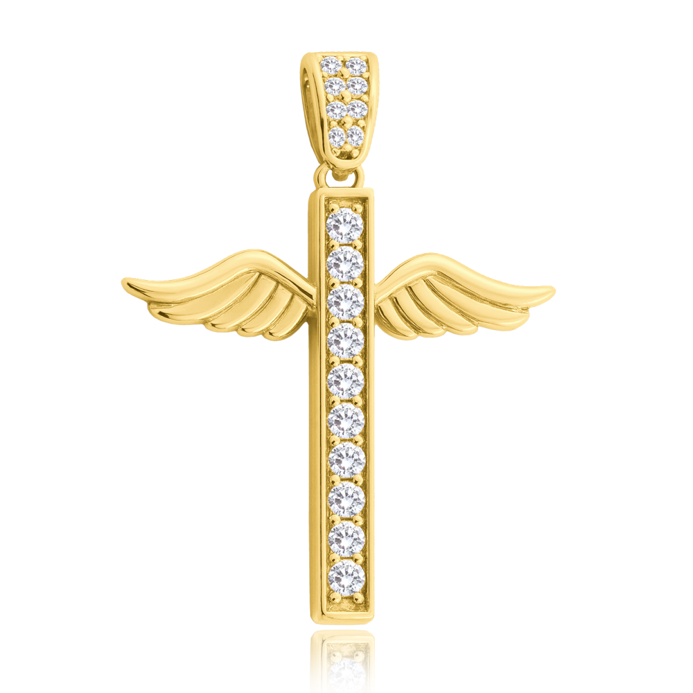 Zlatý přívěsek anděl z pravého 14karátového zlata s bílým zirkonem je symbolem ochrany a víry.