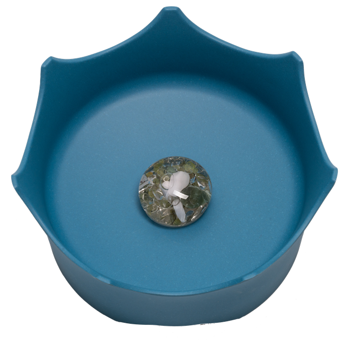 Miska CrownJuwel je robusní a pevná (70% bambus, kukuřičný škrob, dřevěná vlákna, 30% syntetická pryskyřice), na dně s uchyceným skleněným modulem s drahokamy pro zcela přírodní revitalizaci pitné vody. Je vyrobená z pevného borosilikátového skla zbaveného zatěžujících prvků.