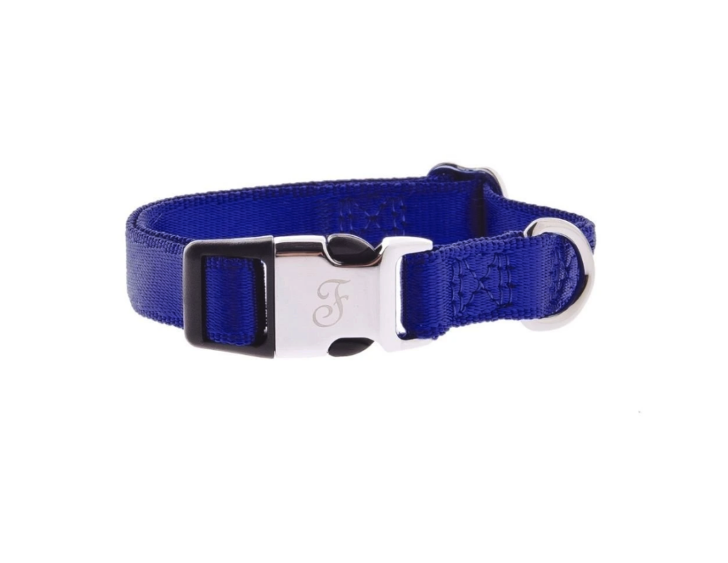 Obojek nylon speciál s okrasnou kovovou pevnou sponou a rytím značky Ferribiella.