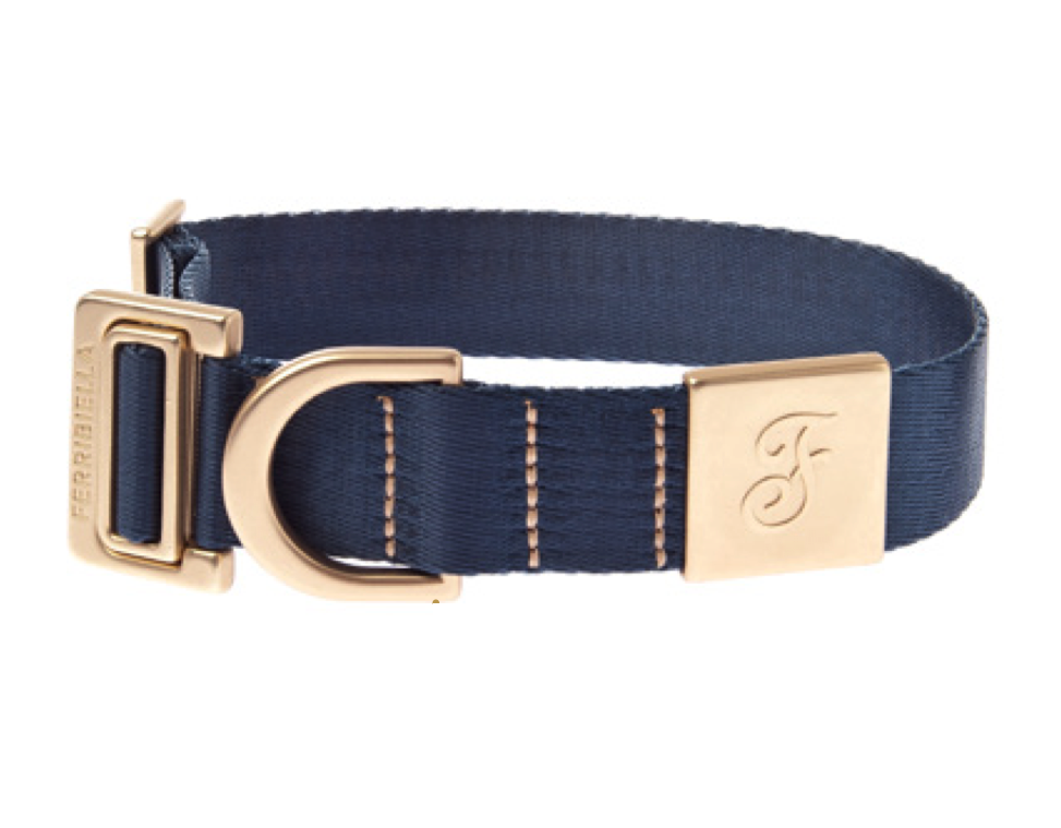 Obojek nylon speciál s okrasnou kovovou pevnou sponou a rytím značky Ferribiella.