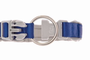 Velký límcový kroužek díky systému průchodu sponou eliminuje nadměrnou tažnou sílu a tím minimalizuje riziko samovolného rozepnutí přezky při používání.