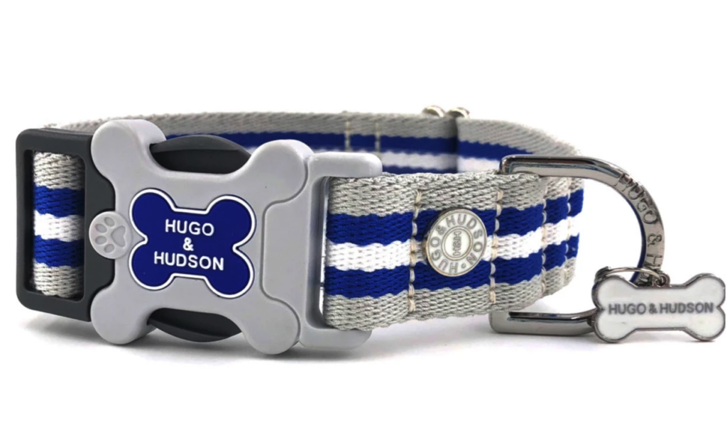 Klasický pruhovaný obojek Hugo & Hudson vypadá skvělé u každého plemene.  Kroužky D poskytují zvýšenou bezpečnost a přezky byly podrobeny zátěžové zkoušce až do 147 kg.