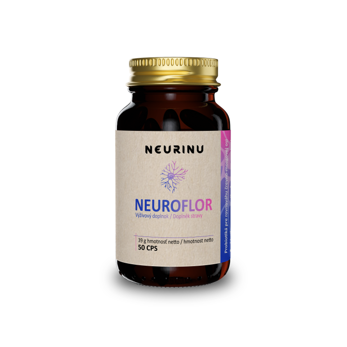 NEURINU Neuroflor™ je doplněk stravy obsahující speciálně vybrané probiotické kmeny a prebiotika, které podporují psychickou pohodu prostřednictvím tzv. střevně-mozkové osy. Tento mechanismus propojuje trávicí trakt a centrální nervovou soustavu a ovlivňuje tvorbu neurotransmiterů, jako je serotonin. Neuroflor™ obsahuje až 45 miliard živých bakterií v denní dávce, které pomáhají optimalizovat složení střevní mikroflóry a tím podporují lepší náladu, klid a odolnost vůči stresu. Účinek podporují speciální prebiotické látky, které vytvářejí ideální prostředí pro množení probiotických buněk. Pro zachování životaschopnosti probiotik byly použity hydrofobní patentované prebiotické přísady, které chrání živé buňky v kapsli. Výživový doplněk je vhodný i pro vegany a neobsahuje žádné zbytečné chemické látky, barviva ani živočišné složky.