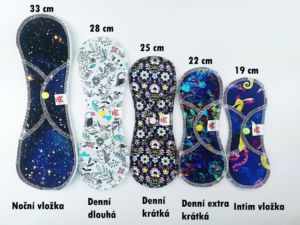 Menstruační vložka s voděodpudivým fleecem je vhodná pro silnou menstruaci a na noc. Vnitřní savou část tvoří dvě vrstvy biobavlněněného beránka a střih je na obou koncích rozšířený.  Díky fleecu dýchá, ale pod tlakem (např. při dlouhém sezení) může provlhat.