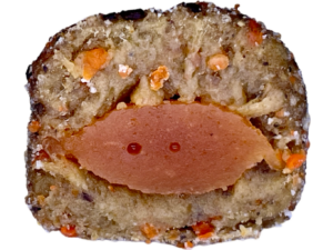 Složení: sušené lososové maso mleté 32 %, batáty sušené mleté 20%, želatina (vepřová) 20 %, glycerin, Kurkuma 3%, peptid kolagenu 1 %, MSM – Methylsulfonylmethan 1,5 %, D-Glukosamine Sulfate 1,5 %, chondroitin sulfát 1 %, OMEGA- 3 2 %, kyselina hyaluronová 0,2 %, kyselina askorbová 0,2 %, slávka zelená 0,2 %, laktobakterie 5,6×105 cfu/ml, Albumin, směs sušených bylinek, lososový olej.