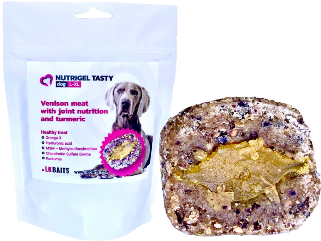 Zdravé mlsání s kloubní výživou a kurkumou. Unikátní pamlsek pro psy 3v1 NUTRIGEL TASTY od LK Baits nejen báječně chutná, ale taky přispívá ke zdravému pohybu, imunitě, trávení a funguje jako prevence zánětů. V LK Baits navíc mysleli i na snadnou vstřebatelnost, takže si ze všech nutričně bohatých a čistě přírodních přísad vezme pes opravdu maximum.