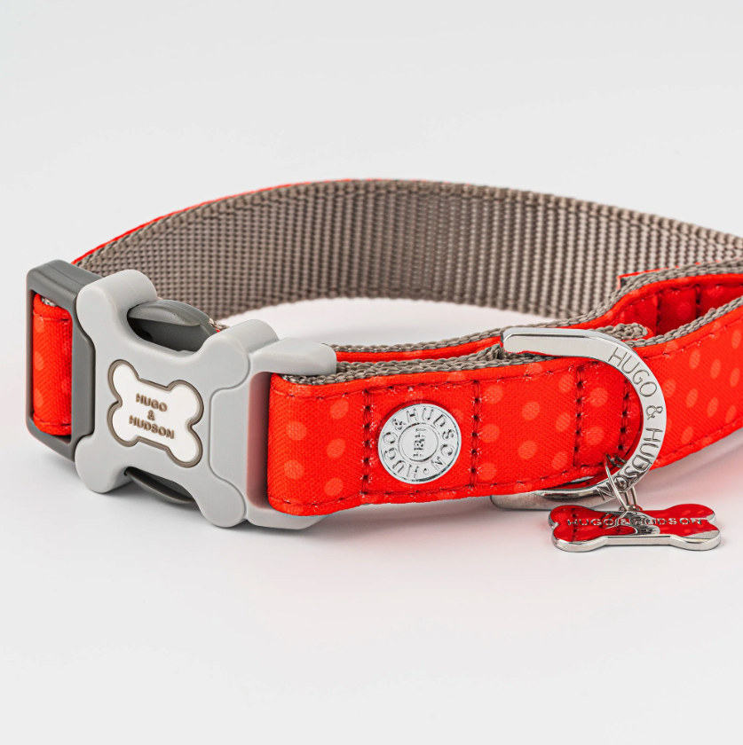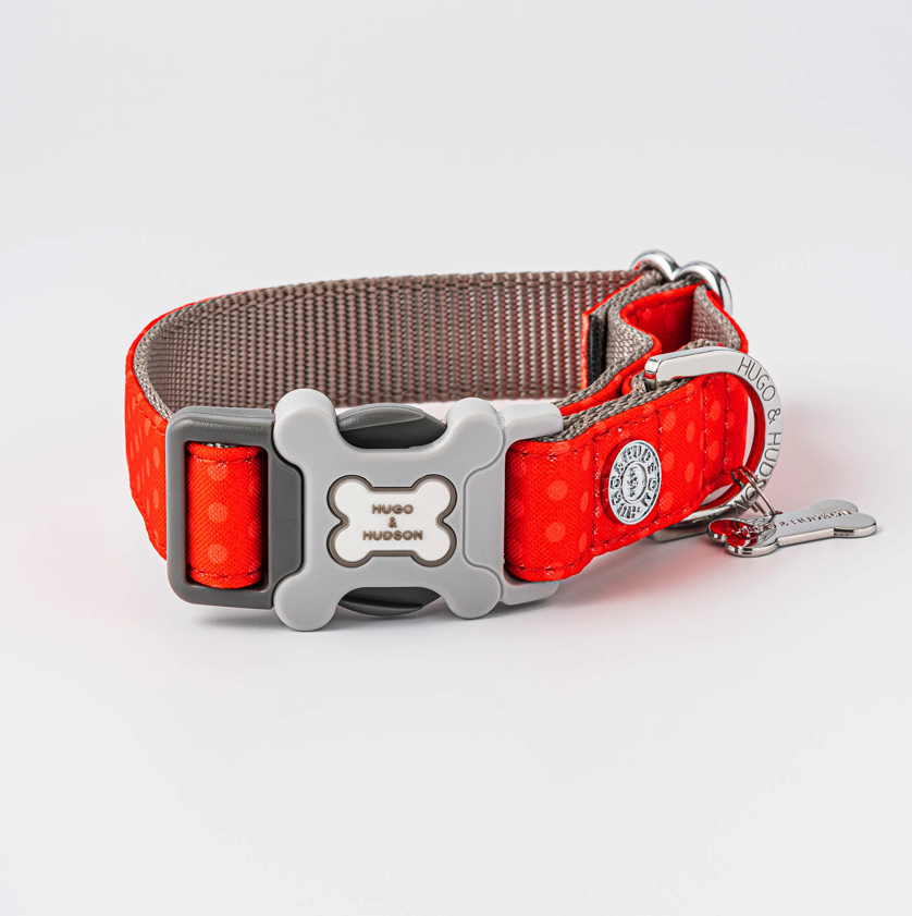 Obojek Hugo & Hudson se dodává s nylonovým popruhem s vysokou pevností v tahu. Speciální nýty a kroužky D poskytují mimořádnou bezpečnost a kovová spona s bočním uvolňováním má tvarovaný hliník nejvyšší kvality.