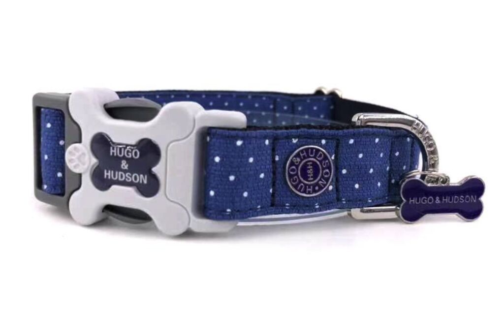 Obojek Hugo & Hudson se dodává s nylonovým popruhem s vysokou pevností v tahu. Speciální nýty a kroužky D poskytují mimořádnou bezpečnost a kovová spona s bočním uvolňováním má tvarovaný hliník nejvyšší kvality.