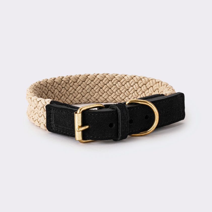 „Italská kolekce“ Hugo & Hudson, ručně vyrobená z prémiových materiálů, nabízí pohodlné, elegantní a tradiční doplňky pro domácí mazlíčky. Náš plochý obojek pro psy je vyroben z prvotřídní italské kůže a tkaného lana a je zvýrazněn černou koženou nákrčníkem. Obojek se může pochlubit zlatými mosaznými kovovými sponami a kroužky a je k dispozici v 6 nastavitelných velikostech, aby se zajistilo optimální přizpůsobení.