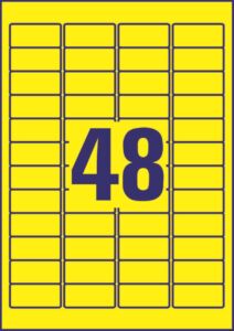 rozměr 45,7×21,2 mm, 20 archů A4, 960 ks etiket v balení (48 ks/arch), PET fólie, permanentní lepidlo, barva žlutá. Typ tiskárny: černobílá laserová.