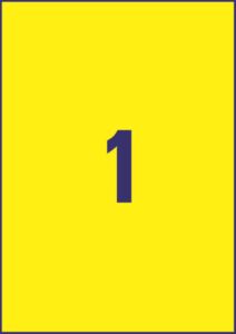 8 archů A4 se splitem, rozměr 210x297 mm, 8 ks etiket v balení, odolná polyesterová fólie, permanentní lepidlo, barva žlutá. Typ tiskárny: černobílá laserová.