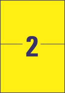 rozměr 210×148 mm, 20 archů A4, 40 ks etiket v balení (2 ks/arch), PET fólie, permanentní lepidlo, barva žlutá. Typ tiskárny: černobílá laserová.