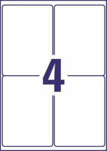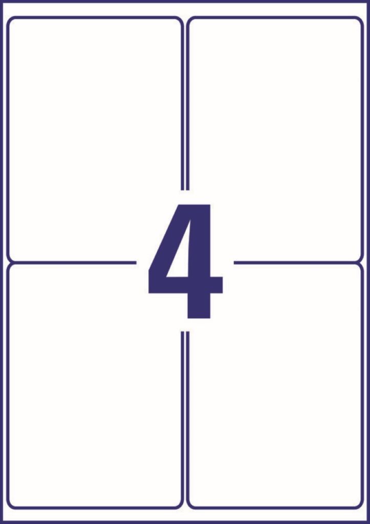 rozměr 99,1×139 mm, 10 archů A4, 40 ks etiket v balení (4 ks/arch), PET fólie, permanentní lepidlo, barva bílá. Typ tiskárny: inkoustová.