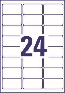 rozměr 63,5×33,9 mm, 20 archů A4, 480 ks etiket v balení (24 ks/arch), PET fólie, snímatelné lepidlo, barva bílá. Typ tiskárny: černobílá laserová, barevná laserová.