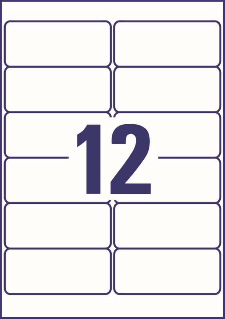 rozměr 99,1×42,3 mm, 20 archů A4, 240 ks etiket v balení (12 ks/arch), PET fólie, snímatelné lepidlo, barva bílá. Typ tiskárny: černobílá laserová, barevná laserová.