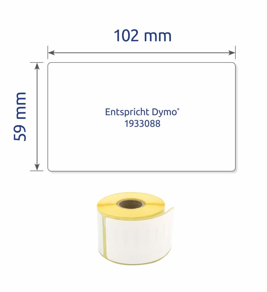 rozměr 102x59 mm, 300 ks etiket v balení, odolná fólie, permanentní lepidlo, barva bílá. Kompatibilní náhrada za originální štítky Dymo 1933088.