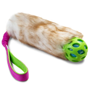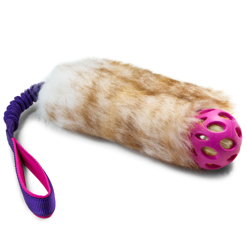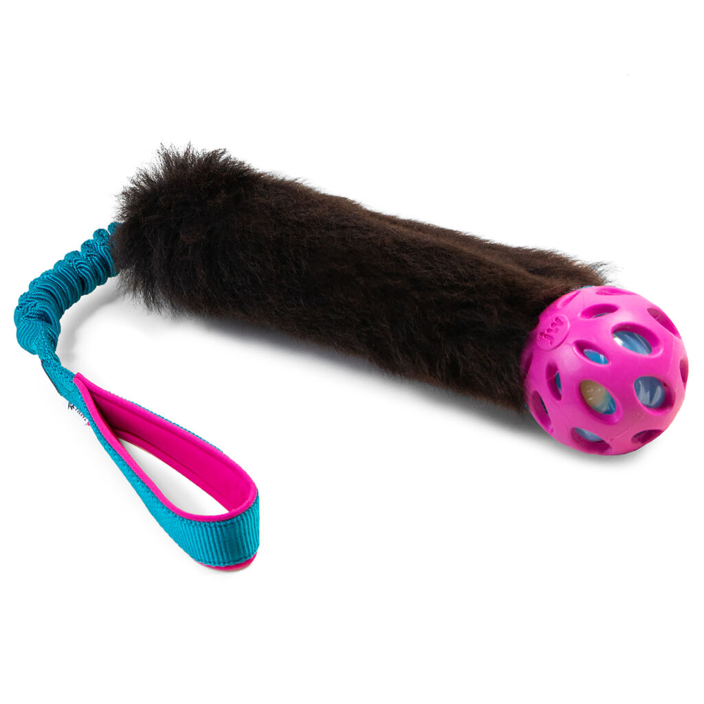 Hračka je určena pro psy, které motivují přírodní ovčí kůže a zábavné zvuky. Tato tahací hračka je vybavena praskající koulí, která se skládá z pružné, kulaté gumové „klece“ pokrývající „lahvovou kouli“, což je dutá koule vyrobená z recyklovaných lahví. Když váš pes kousne do této koule, vydá praskavý zvuk, který mnoho psů miluje.