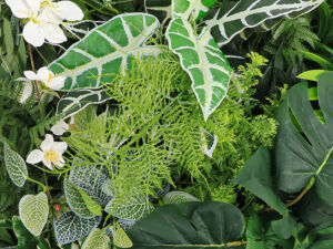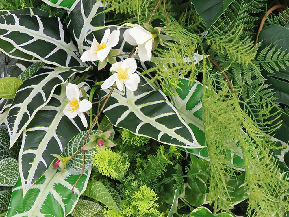 Panel z mixu rostlin ideální k vytvoření zelené stěny nebo vertikální zahrady.