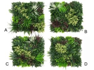Rozměr panelu je 50x50cm. Možno využít k výrobě živých plotů, zástěn, dekoraci ploch apod. Uzpůsobeno pro snadné přichycení k podkladům jako jsou ploty apod.