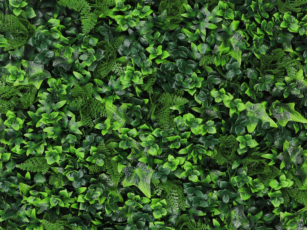 Panel kapradí doplněný o mix drobnějších rostlin.