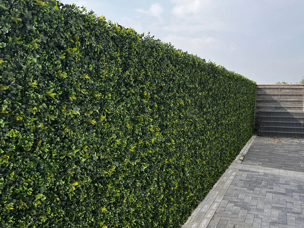 Rozměr panelu je 50x50cm. Možno využít k výrobě živých plotů, zástěn, dekoraci ploch apod. Uzpůsobeno pro snadné přichycení k podkladům jako jsou ploty apod.