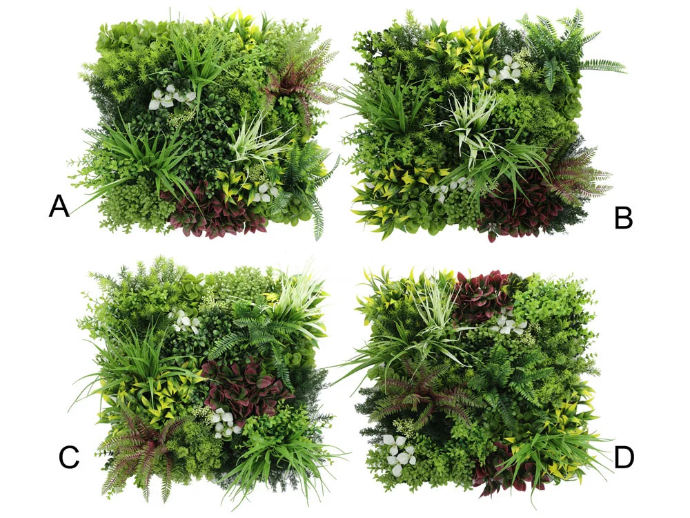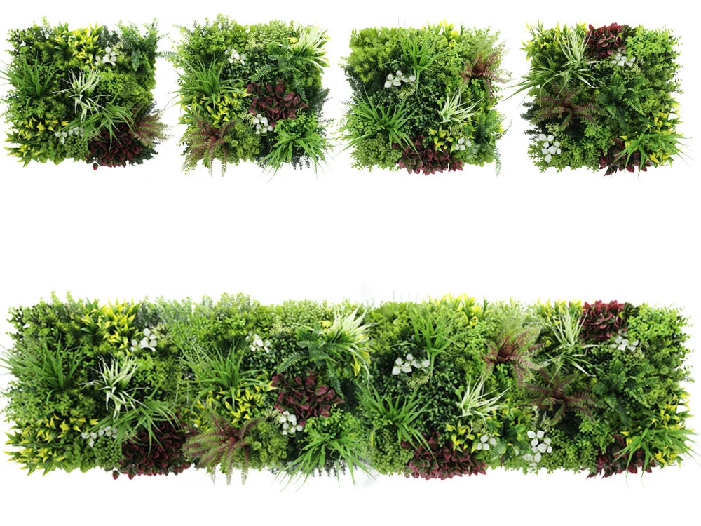 Umělá zelená stěna Diverso je jedním z typů umělých živých plotů s pestrou strukturou a směsí barev Díky různému rozložení rostlin na jednotlivých panelech lze vytvářet zajímavé a přirozené kombinace.