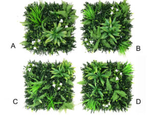 Rozměr panelu je 50x50cm. Možno využít k výrobě živých plotů, zástěn, dekoraci ploch apod. Uzpůsobeno pro snadné přichycení k podkladům jako jsou ploty apod.