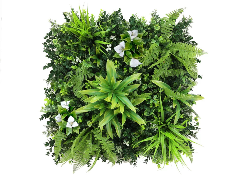 Umělý živý plot Dracaena White je jedním z typů umělých živých plotů s pestrou strukturou a směsí barev Díky různému rozložení rostlin na jednotlivých panelech lze vytvářet zajímavé a přirozené kombinace.