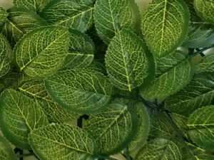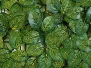 Ekonomická varianta umělého živého plotu tvořena listy fitónie (hadí kůže).