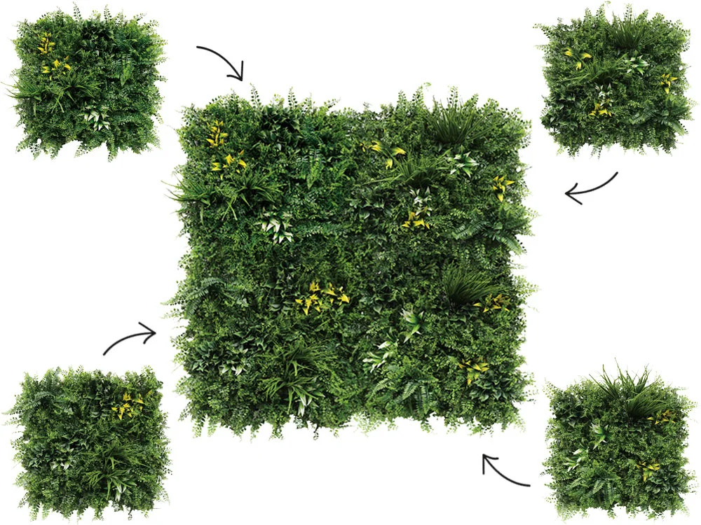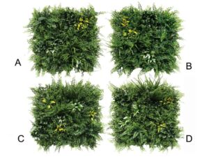 Rozměr panelu je 50x50cm. Možno využít k výrobě zelených stěn, živých plotů, zástěn, dekoraci ploch apod. Uzpůsobeno pro snadné přichycení k podkladům jako jsou ploty apod.