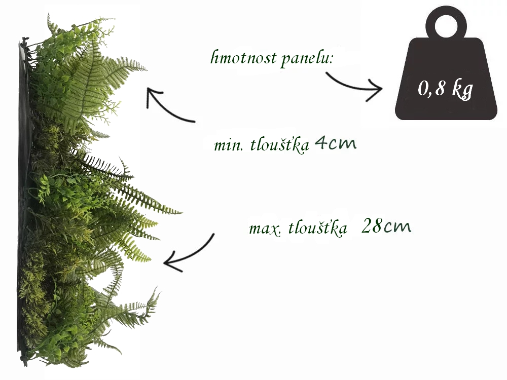 Díky různému rozložení rostlin na jednotlivých panelech lze vytvářet zajímavé a přirozené kombinacePanely lze snadno vzájemně spojovat i dle potřeby zkrátit nůžkami.Lze kombinovat s penelem Jungle Fern.