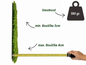 Plastový rastr, na kterém je připevněn umělý mech, měří 50 x 50 cm. Na plochu 1 čtver. metru je tedy zapotřebí 4 panelů.