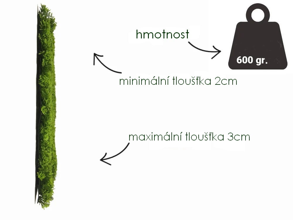 Hezká imitace mechu světlejší zelené barvy. Je vyroben z velmi kvalitních plastů s patentovaným blokátorem Nano-UV ©.