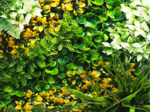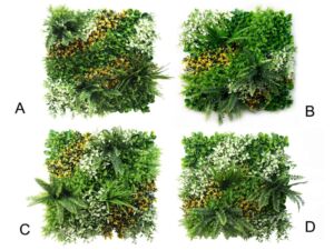 U této zelené stěny jsou používány 4 různé kombinace skladby rostlin. Lze tak z jednotlivých panelů vytvářet