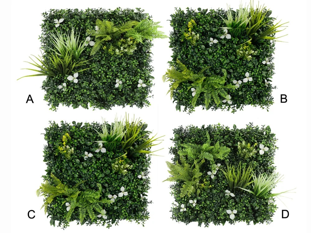 Díky různému rozložení rostlin na jednotlivých panelech lze vytvářet zajímavé a přirozené kombinace. Velmi hustý. Je vyroben z velmi kvalitních plastů s patentovaným blokátorem Nano-UV ©.