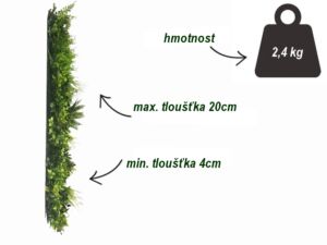 Dílce jsou opatřené klipy pro snadné spojování dílců do velkých ploch. Dekorativní část plotu tvoří hustá skupina realisticky vyrobených listů, které jsou vsazené do plastového rastru. Rozložení listů je pohledově jednostranné, druhá strana je tvořena plastovou mřížkou.