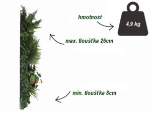 Dílce jsou opatřené klipy pro snadné spojování dílců do velkých ploch. Dekorativní část plotu tvoří hustá skupina realisticky vyrobených listů, které jsou vsazené do plastového rastru. Rozložení listů je pohledově jednostranné, druhá strana je tvořena plastovou mřížkou.