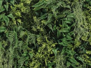 Zeleň je převážně tvořena směsí kapradin, doplněna o španělský mech.
