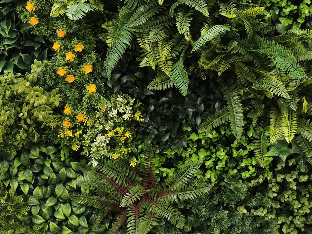 Tuto umělou zelenou stěnu lze použít pro vnitřní i venkovní aplikace.