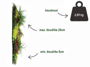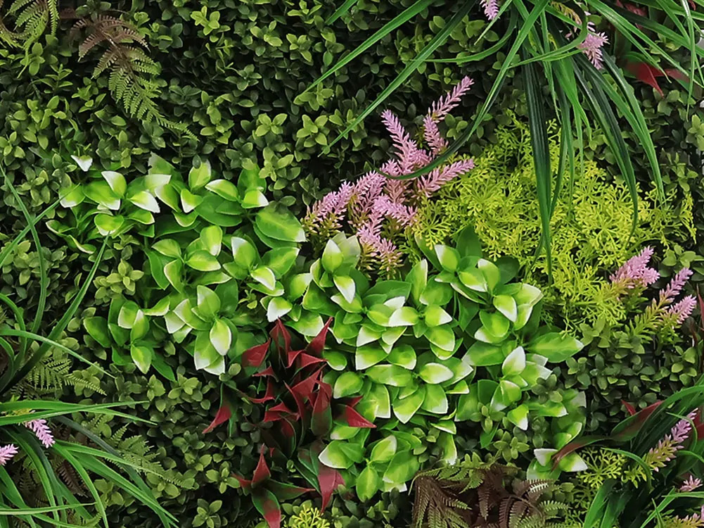 Tuto umělou zelenou stěnu lze použít pro vnitřní i venkovní aplikace.