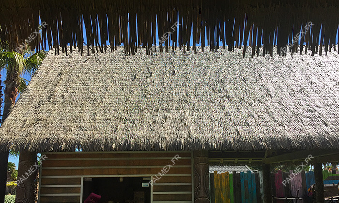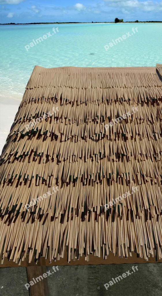 Syntetické (plastové) panely imitující sušené palmové list vhodné pro zastřešení zahradních staveb, staveb s tropickým motivem, „plážových“ objektů apod.