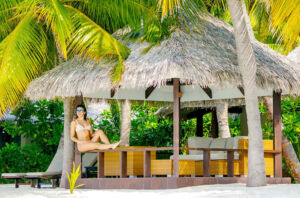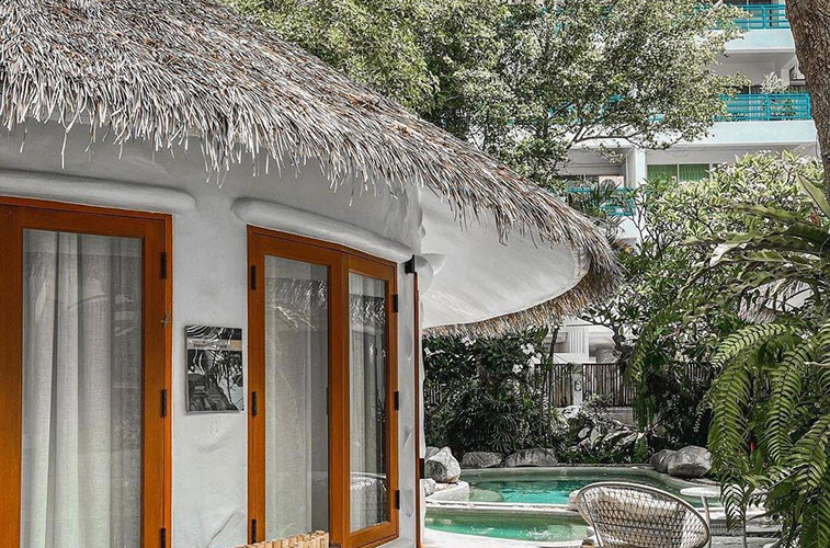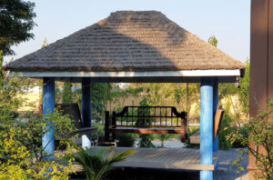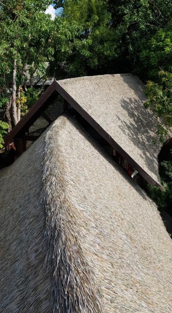 Syntetické (plastové) panely imitující sušené palmové list vhodné pro zastřešení zahradních staveb, staveb s tropickým motivem, „plážových“ objektů apod.