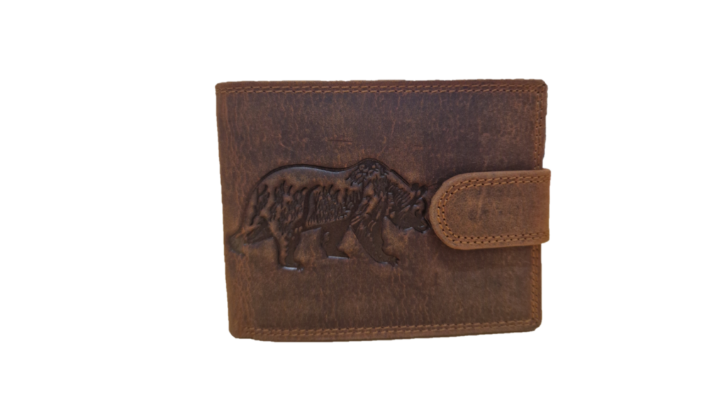 Pánská kožená peněženka s motivem medvěda.