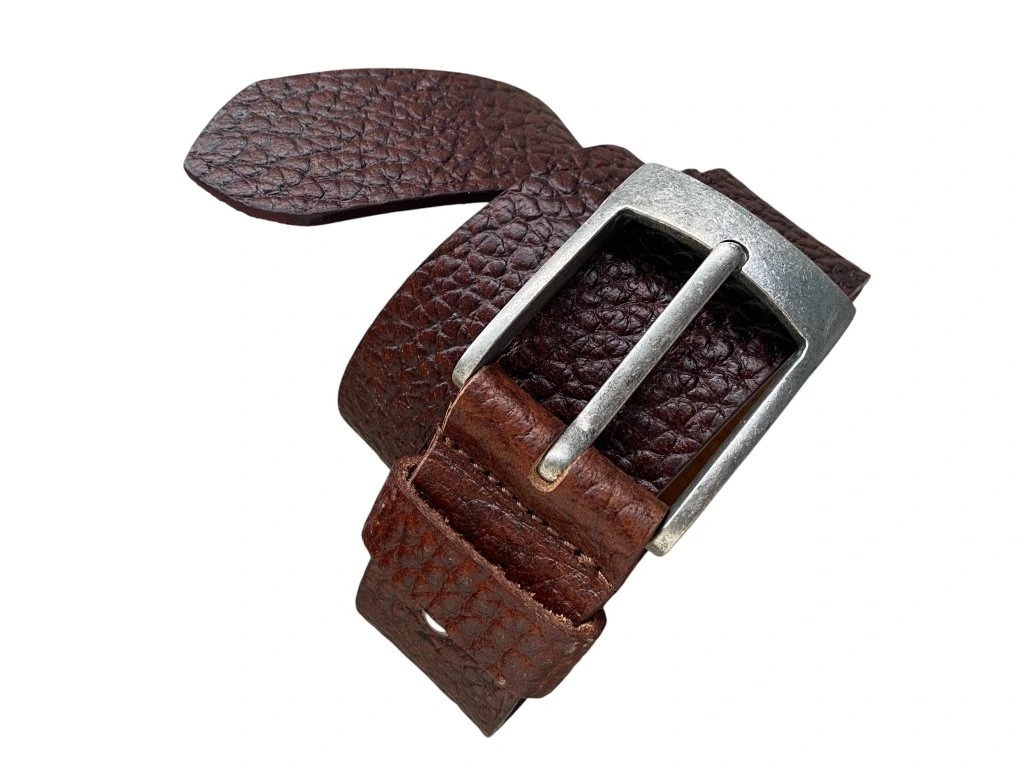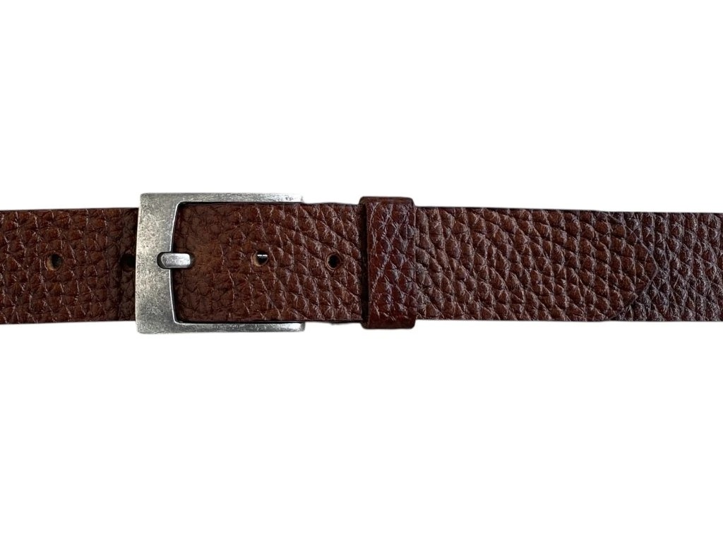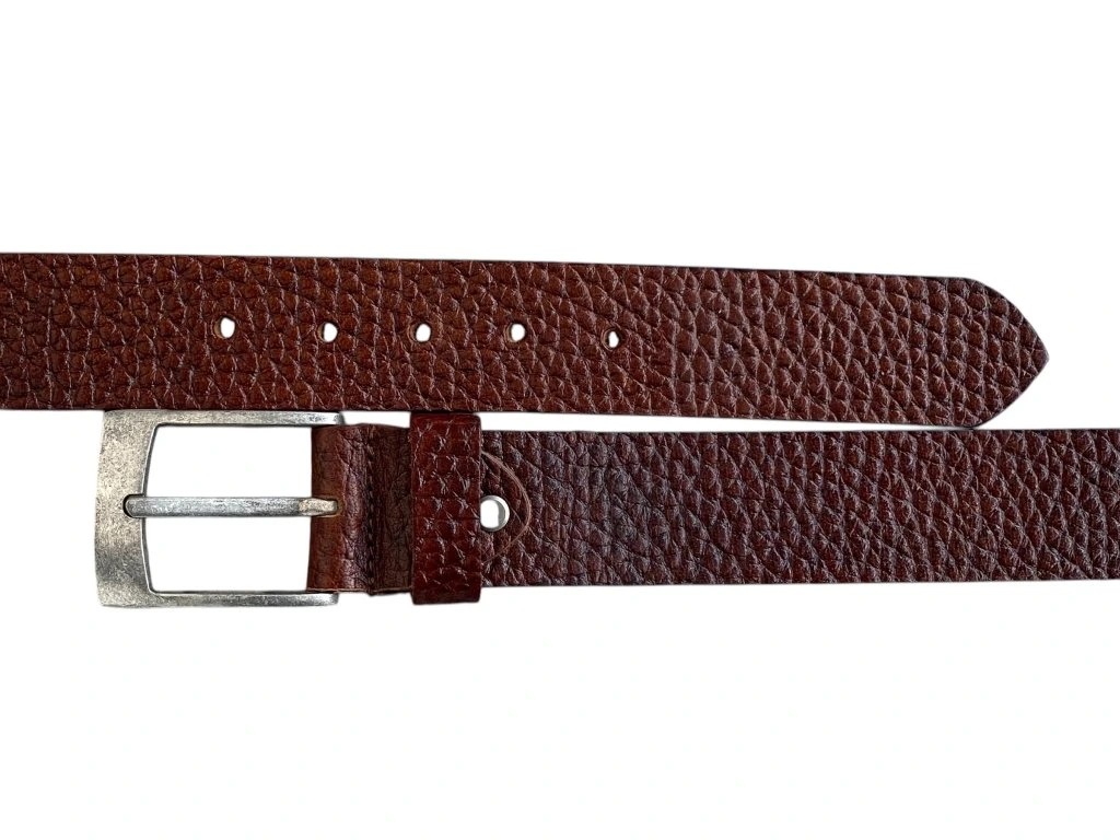 Dolaďte svůj outfit s elegantním páskem JONH 1, který spojuje kvalitu pravé kůže s výrazným texturovaným designem. Tento hnědý pásek je ideální pro každodenní nošení i formální příležitosti. Robustní kovová spona ve stříbrném matném provedení zajišťuje bezpečné zapínání a podtrhuje jeho stylový vzhled.