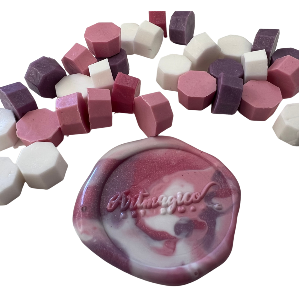 Vosky na pečetění jsou vyrobené ze speciálního vosku, který při roztavení připomíná umělou hmotu. Díky své struktuře je vosk krásně pružný, neláme se a nepraská. Pečetění vosk můžete použít k pečetění na různých materiálech. Skvěle drží jak na papíru, tak na plastu, skle i dalších materiálech. Pečetní vosky Artmagico jsou nabízené ve formě malých granulek – peletek, které se skvěle taví.