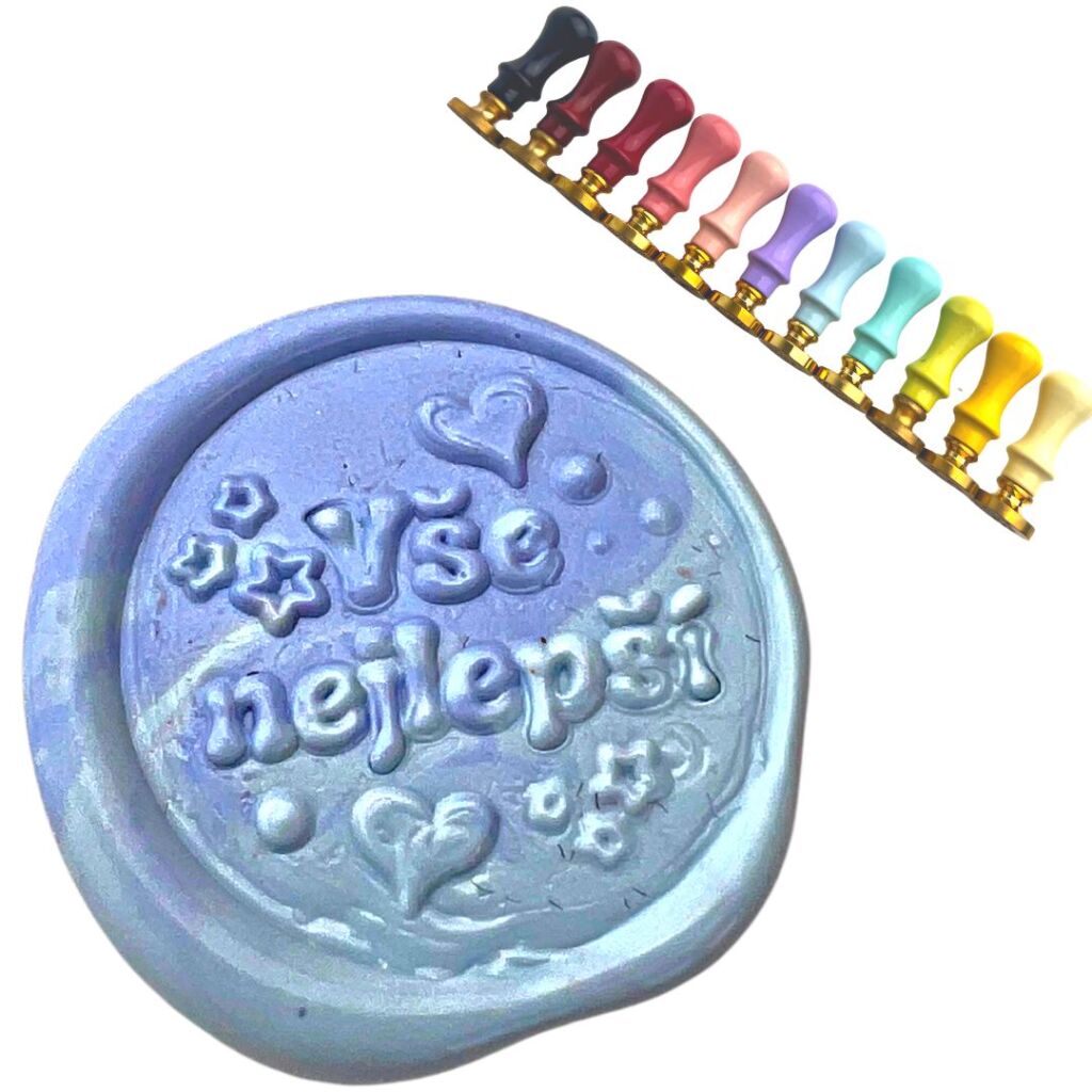 Pečetidlo s nápisem Vše nejlepší ozdobí každou obálku a dodá ji nádech elegance. Objevte kouzlo pečetění a využijte pečetě jako ozdobu na cokoliv od obálek, svatebních oznámení, ozdob vánočních dárků, ale i spousty dalšího.