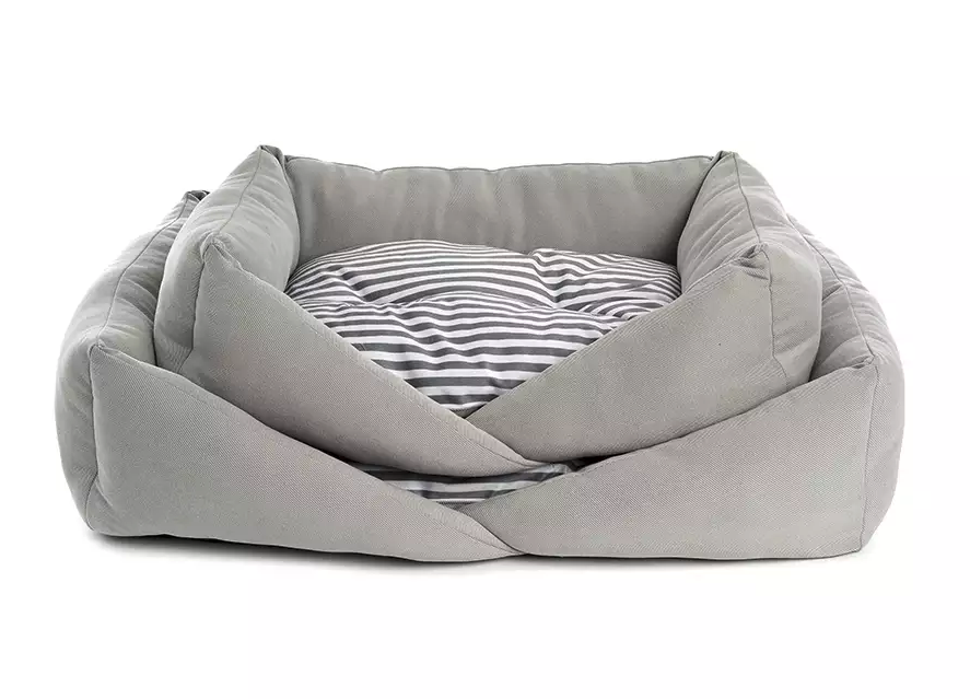Pelech pro psa, který mu budete závidět? To je tento italský zázrak! Pelíšek pro psy má vyjímatelný a oboustranný vnitřní polštář. Jedna strana je modbrá s bílými pruhy, druhá šedá. Aby se do pelíšku dostala co by dup i malá plemena, má vepředu usnadněný zkřízený tvar pro lepší přístup.