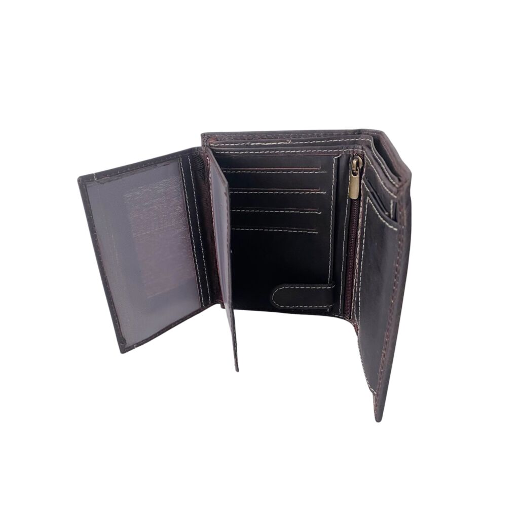 🖤 Elegantní kožená peněženka s praktickým uspořádáním Tato stylová černá peněženka z pravé kůže je dokonalým doplňkem pro každodenní použití. Vyrobena z kvalitní pravé kůže a doplněná o precizní prošívání, nabízí nadčasový vzhled i vysokou funkčnost. 🐂 Pravá kůže s elegantní texturou Autentická pravá kůže s jemným povrchem dodává peněžence sofistikovaný vzhled, příjemný na dotek. Tento materiál zajišťuje dlouhou životnost a časem získává jedinečnou patinu. 🗂️ Promyšlené vnitřní uspořádání pro maximální přehled: 💵 2x přihrádka na bankovky – pro snadné a přehledné uložení hotovosti 💳 Více přihrádek na karty – bezpečné místo pro platební, věrnostní i vizitky 🗂️3x průhledná přihrádka na doklady – ideální pro občanský nebo řidičský průkaz 🔐 1x zipová přihrádka – diskrétní prostor pro cennější obsah nebo účtenky 💰 1x kapsička na mince s klopou na druk – drobné zůstanou bezpečně uložené 📏 Kompaktní rozměry, které padnou do každé kapsy Rozměry cca 10 x 12,5 x 2,5 cm (šířka x výška x hloubka) zaručují, že peněženka je praktická a přitom elegantní – ideální pro každodenní nošení. 🖤 Nadčasový design pro každou příležitost Klasická černá barva a decentní zpracování dělají z této peněženky vkusný doplněk, který skvěle doplní formální i volnočasový outfit.